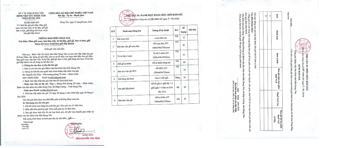Mời báo giá gói thầu; Hỗ trợ kinh phí làm rèm chống nắng khoa khám bệnh