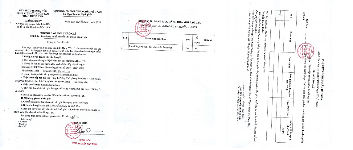 Mời báo giá: Làm biển, sơ đồ chỉ dẫn khoa toàn Bệnh viện và in mẫu biểu chuyên môn